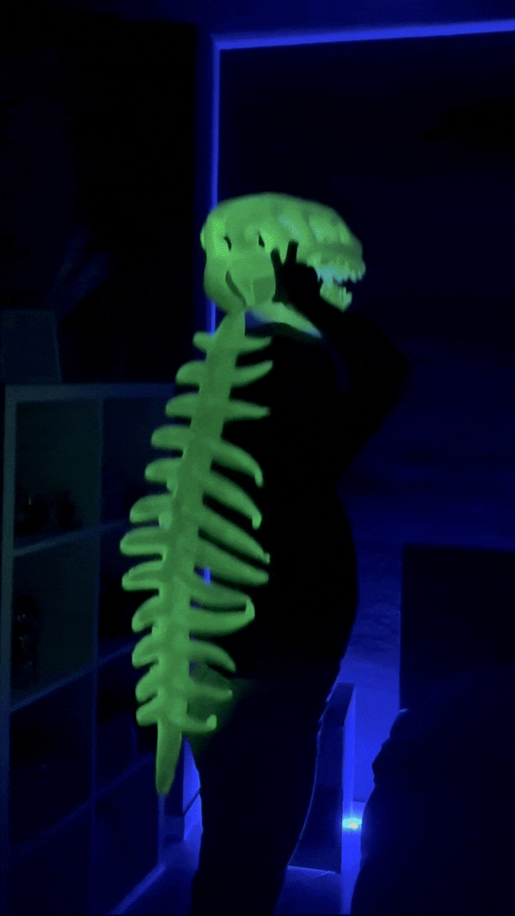 The glow-in-the-dark Fossil Snug works by absorbing light. Simply place it under natural or artificial light for a few minutes. The dinosaur fabric absorbs the light and then glows in the dark, creating a fun and magical effect once the lights are off. The brighter the light exposure, the stronger the glow.